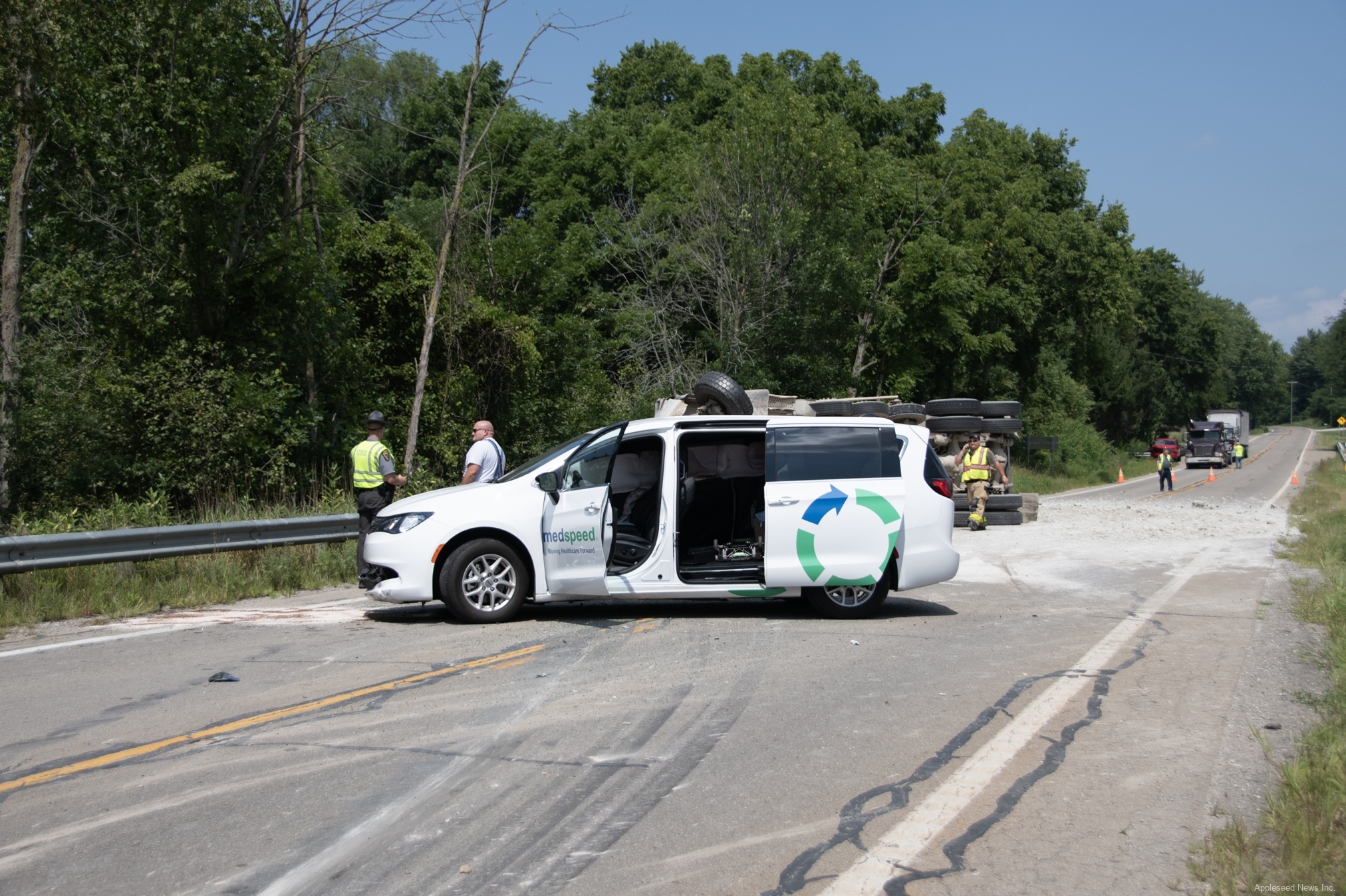 Mr. Massie was transported by Franklin Township EMS to OhioHealth Mansfield Hospital for treatment. The driver of the Chevrolet Blazer, 26-year-old Amber Boyd of Mansfield, was not injured. She brought her vehicle to a stop north of the overturned truck and sustained only minor damage.