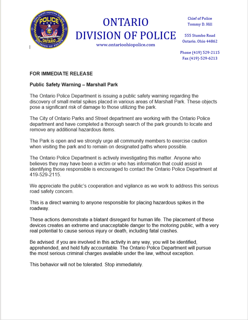 Appleseed NewsNO BS Just FactsFacebookXHomeEvents CalendarNewsCommunityCrimeFireStructure FireVehicle FiresGovernmentPublic NoticeState of OhioTrafficANIAppleseed News’s Editorial Independence PolicyOur Mission StatementTerms of ServicePrivacy and Cookie PolicyStaff PageContact usShopping CartDonate to Appleseed NewsCommunity DiscountsHomeNewsSafety Warning Marshall ParkNewsSafety Warning Marshall ParkBy Carl GilliamApril 8, 202603784ShareFacebookXPinterestWhatsApp ShareFacebookXPinterestWhatsApp Previous articleFormer Holmes County Chief Probation Officer Roger Estill CONVICTEDCarl Gilliamhttps://appleseednews.com RELATED ARTICLES Civil RightsFormer Holmes County Chief Probation Officer Roger Estill CONVICTED March 27, 2026 Community5th Ave. Street Closure Planned in Mansfield for Road Repairs March 20, 2026 CommunityAmazing Students ! Crestview Press Release December 19, 2025 LEAVE A REPLY Cancel replyLog in to leave a comment - Advertisment - Most PopularFormer Holmes County Chief Probation Officer Roger Estill CONVICTED March 27, 2026 5th Ave. Street Closure Planned in Mansfield for Road Repairs March 20, 2026 Who wants a new public Pool? Read This. March 6, 2026 Amazing Students ! Crestview Press Release December 19, 2025 Load moreRecent Comments Missdancealot on Small Child and Dog Left in Car Rescued by Quick-Thinking Deputy Mother Charged with Child Endangerment Motorcycle vs Car Oh-314 OSHP Press Release - Richland News Network on Motorcycle vs Car Oh-314 Motorcycle vs Car Oh-314 - Richland News Network on 2 Commercial Vehicles Head on collision Penn Ave. Structure Fire Update - Richland News Network on Structure Fire on Penn Ave.